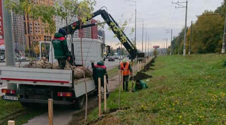 Масова осіння висадка дерев, чагарників та інших зелених насаджень триває у Києві. Тільки у Голосіївському районі на бульварі поруч з Кільцевою дорогою посадили 100 сріблястих кленів. 40 дерев з’явилися поблизу Столичного шосе, а на вулиці Метрологічній висадили 40 лип. Ці дерева не тільки стануть окрасою Голосіївського району, але й зроблять його повітря більш чистим.